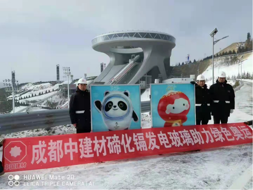 凯盛科技中建材光电材料用先进的碲化镉发电玻璃建设了奥运走廊——张家口赤城县大型山地修复电站项目,绿色冬奥示范工程——张家口帝达世博广场改造项目,和冬奥赛区发电玻璃形象装饰工程。在冬奥村核心区域、国家跳台滑雪中心区域安装了5套冬奥主题碲化镉发电玻璃,绿色电能照亮冬奥赛场。