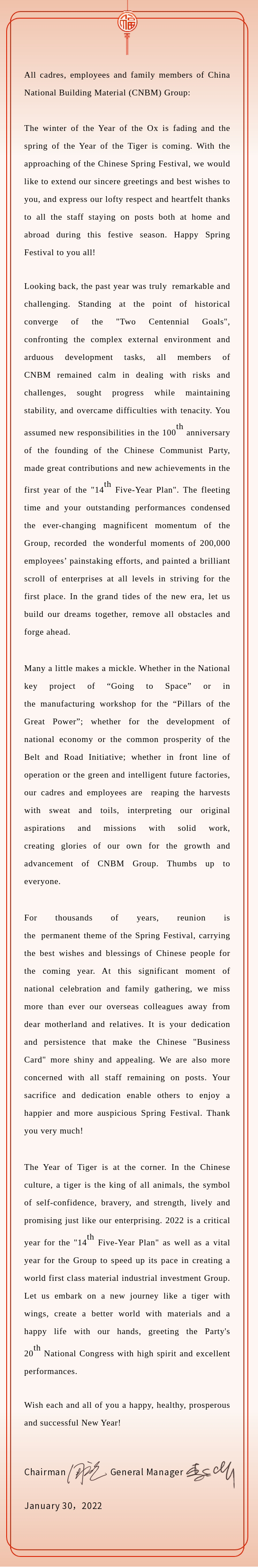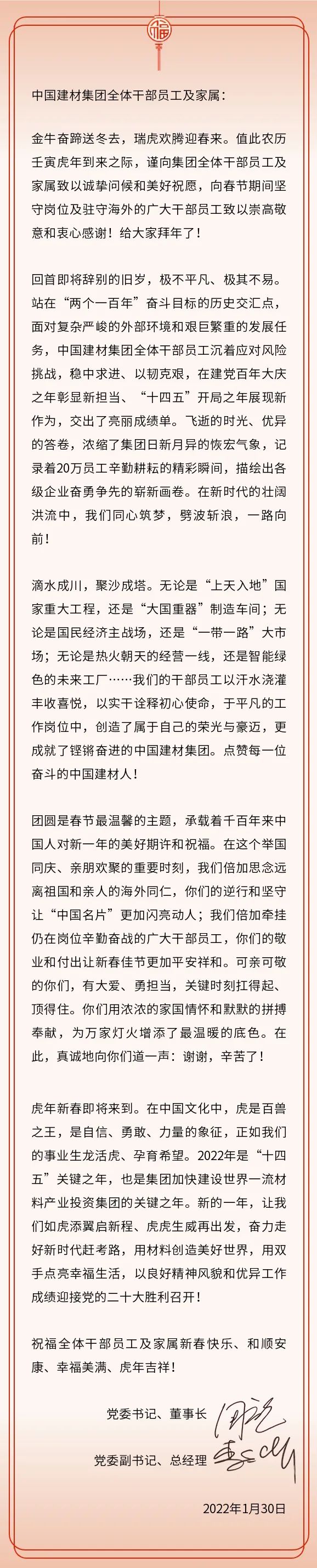 致K8凯发国际集团全体干部员工及家属的一封信