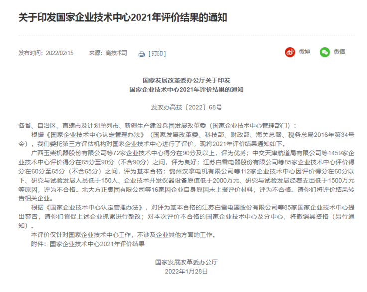 国家企业技术中心2021年评价结果出炉