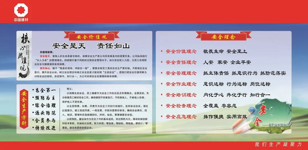 新安中联高度重视企业安全文化建设,建立了完善的安全文化体系。安全文化的本质特征是在于充分调动全体员工在安全生产中的自觉性、持续性,使其发挥决定性作用,也是职工安全生产的保障平台,更是有助于企业安全生产管理的基础。公司始终坚持以高起点、高标准、严要求,将安全成果成功运用于生产中,全力营造“让安全管理成为文化,用文化管理保障企业安全”和“内化于心、固化于制、外化于行”的安全新局面。