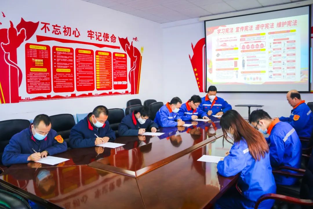 中材节能结合学习宣传贯彻党的二十大精神,以现行宪法公布施行四十周年为契机,组织召开“深入学习领会党的二十大精神挑战答题”、“学习宣传贯彻党的二十大精神网上答题”活动,公司总计300余人参加本次活动,营造了学习党的二十大精神的良好氛围。公司印发宪法宣传海报,组织全级次企业员工观看宪法宣传片,总计观看人数近1000人次,持续营造宪法学习宣传氛围,提升全体员工学习宪法的热情,在公司内营造尊法学法守法用法的浓厚氛围。