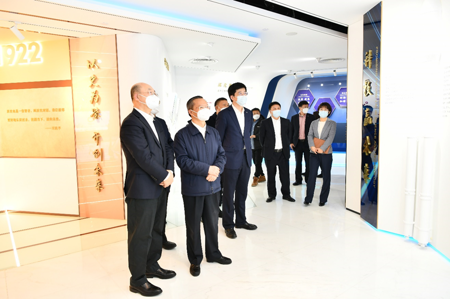 座谈会前,常张利陪同胡忠雄到集团展厅参观分析企业在深化改革、科技创新和生产经营等方面工作概况。