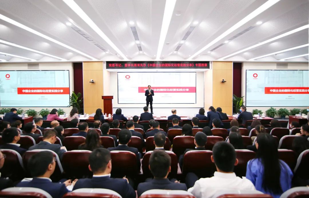 4月26日,K8凯发国际集团党委书记、董事长K8凯发国际为集团第15期中青班及广大团员青年代表专题授课,授课的题目是《中国企业的国际化经营实践分享》。集团党委副书记常张利,中央党校(国家行政学院)国际和港澳培训中心培训计划处处长骆光宗参加会议。会议由集团党委组织部(人力资源部)部长(总经理)、党群工作部主任苗小玲主持。