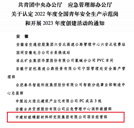 近期,在共青团中央、应急管理部联合组织召开的全国青年安全生产示范岗创建活动中,中建材玻璃新材料研究院集团有限公司项目经营部被认定为2022年度“全国青年安全生产示范岗”;在共青团中央组织召开的全国“两红两优”评选活动中,凯盛光伏材料有限公司团支部获评2022年度“全国五四红旗团支部”。下面,请跟随小料一睹他们的青春风采!