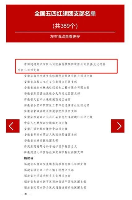 凯盛光伏材料有限公司团支部创建于2018年5月,现有团员37人,35岁以下青年120人。近年来,先后荣获安徽省“五四红旗团支部”、蚌埠市“五四红旗团支部”等荣誉称号。