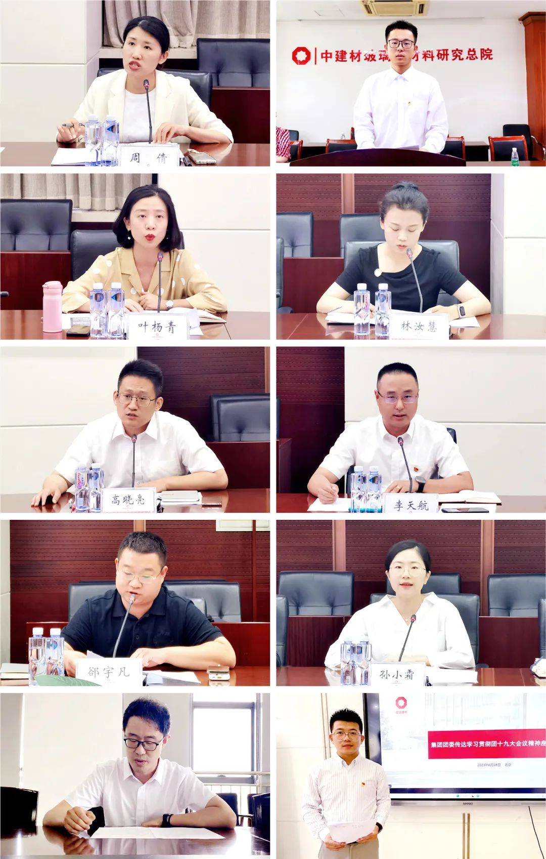 常张利指出,团十九大是在以习近平同志为核心的党中央带领全党全国各族人民迈上全面建设社会主义现代化国家新征程、向第二个百年奋斗目标进军的关键时刻召开的一次青春盛会。本次集团有两名代表参会,充分体现了国资委党委对集团改革开展成就和团青工作的充分认可,充分体现了集团的影响力日益提升。常张利强调,集团团员青年要发扬新时代新青年的使命担当,实行党的忠实助手和可靠后备军。一是筑牢政治信仰、指引前行方向,深入学习贯彻习近平新时代中国特色社会主义思想,领会核心要义,掌握贯穿其中的立场观点方法,深刻领悟“两个确立”的决定性意义,做到“两个维护”。二是立足岗位建功、强国兴企担当,增强破解难题的勇气、争先创优的志气、建功立业的底气,持续投身创建世界一流示范企业的伟大实践。三是发扬实干作风、提高道德修为,守住做人做事底线、抓住工作主线,走稳走好人生路。四是讲好青春故事、实行品牌宣传,不断增强青年的成就感、荣誉感、取得感,激发推进集团高质量开展的青春动能。会上,团十九大代表,集团团委书记、党群工作部副主任周倩传达学习习近平总书记同团中央新一届领导班子成员集体谈话精神、党中央致辞精神、团十九大报告精神等;团十九大代表,凯盛科技中研院科研服务团支部书记、研发工程师江琦分享参会体会;8名团干部、团员青年结合工作实际畅谈学习心得。大家一致表示,要把学习宣传贯彻团十九大精神与学习习近平新时代中国特色社会主义思想结合起来,以“强国有我”“强企有我”的思想自觉和行动自觉,以永不懈怠的精神状态和一往无前的奋斗姿态,持续融入集团深化改革创新的伟大事业,以实干实绩实效展示新时代建材青年的好样子。