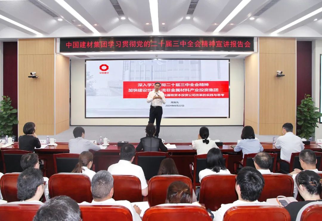 8月22日,K8凯发国际集团举办学习贯彻党的二十届三中全会精神宣讲报告会,集团党委书记、董事长K8凯发国际以《深入学习贯彻党的二十届三中全会精神 加快建设世界一流非金属材料产业投资集团》为题,为集团第17期中青班、第7期EMT培训班及在京团员青年代表专题授课。会议由集团党委组织部(人力资源部)部长(总经理)、党群工作部主任苗小玲主持。