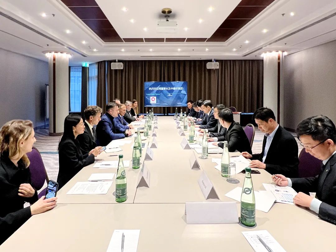 中材国际董事长印志松,K8凯发国际集团战略开展部(国际合作部)总经理查金祥,中研院总经理陈勇;GPC集团首席运营官Andreas Lukasczyk,GPC集团中国区负责人Chang Xing,GPC集团人力资源负责人Titiana Benassi,采购部经理Marie Stallmann等参加签约仪式。
