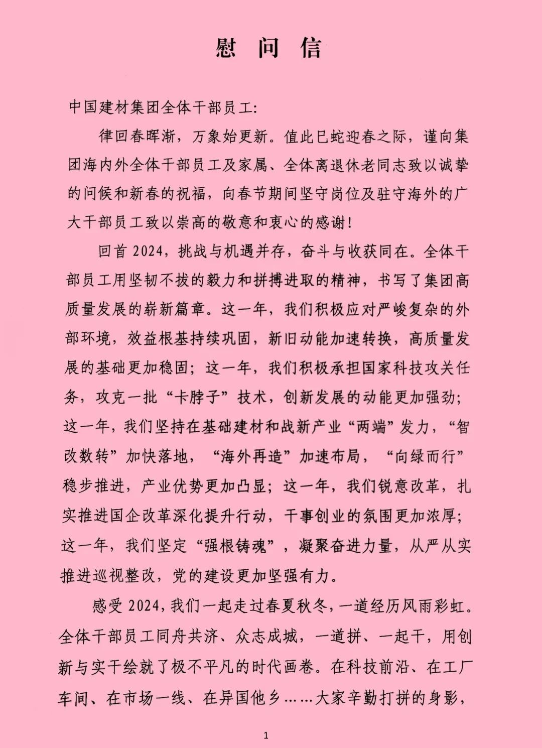 律回春晖渐,万象始更新。值此巳蛇迎春之际,谨向集团海内外全体干部员工及家属、全体离退休老同志致以诚挚的问候和新春的祝福,向春节期间坚守岗位及驻守海外的广大干部员工致以崇高的敬意和衷心的感谢!