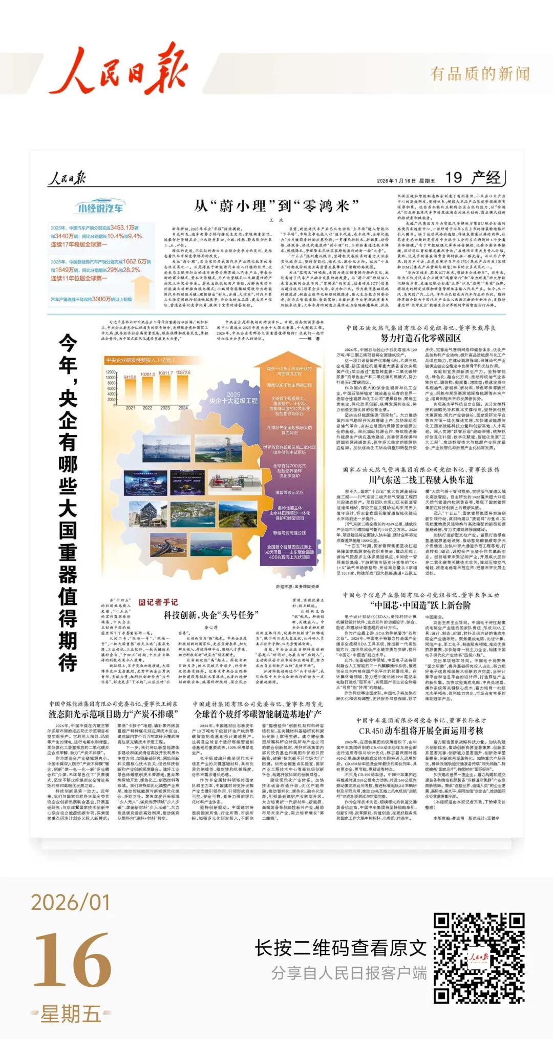 来源:人民日报、集团党委宣传部 发布时间:2026-01-20习近平总书记对中央企业工作作出重要指示强调:“新征程上,中央企业要充分认识肩负的职责使命,更好服务党和国家工作大局,服务经济社会高质量开展,服务保障和改善民生,勇担社会责任,为中国式现代化建设贡献更大力量。”