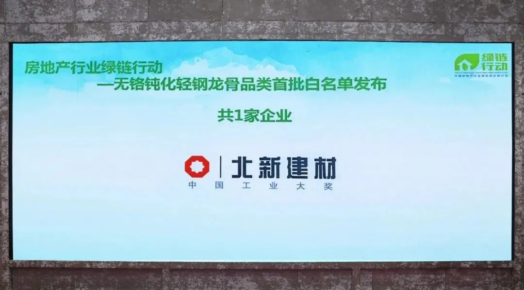 近期,中国房地产行业绿链行动举行四周年成果发布仪式,除已有品类白名单更新外,新发布了无铬钝化轻钢龙骨品类首批白名单,北新建材独家入选。