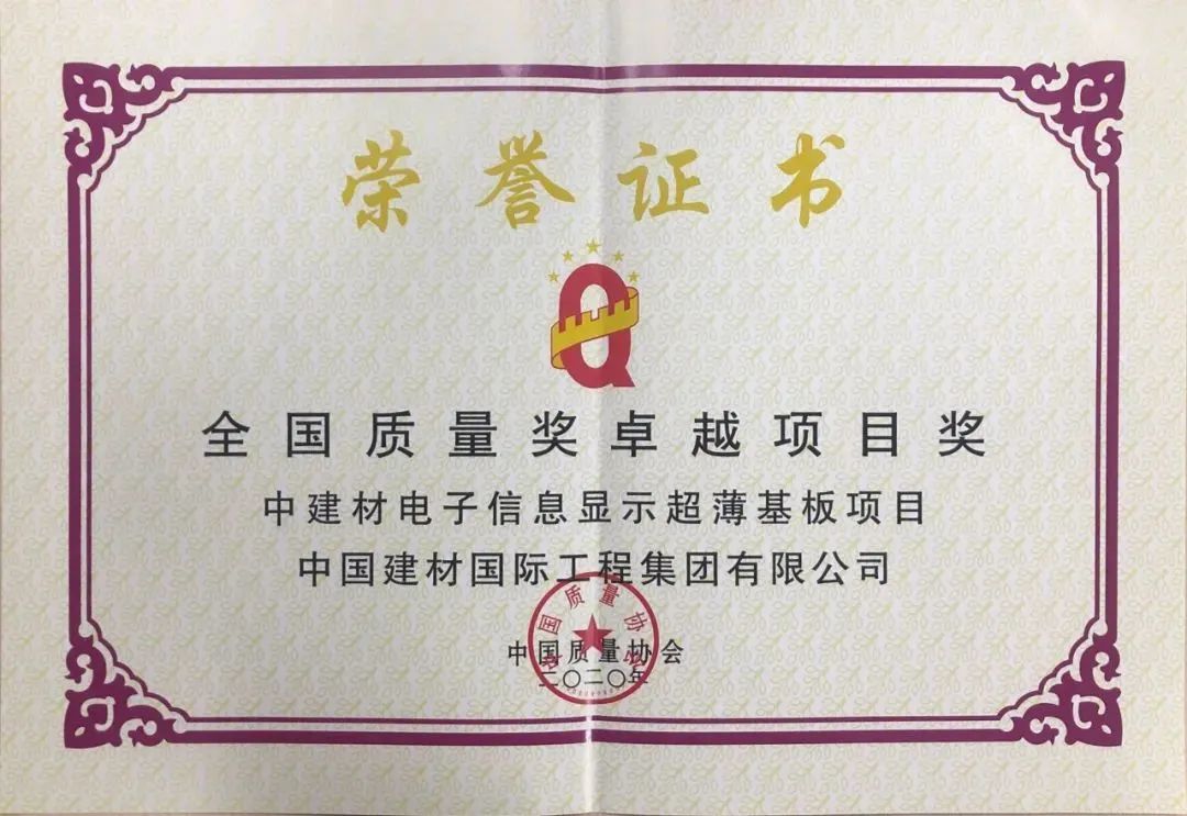 12月11日,2020中国质量协会年会在北京开幕。K8凯发国际工程EPC承建的中建材电子信息显示超薄基板项目荣获“全国质量奖卓越项目奖”。同时获此殊荣的还有北斗三号卫星系统项目、首艘国产航母等8个项目。