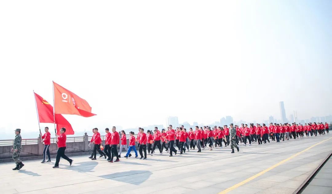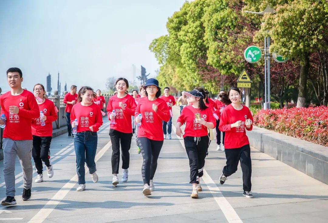 健跑活动上午9时正式开始。100名干部员工持续参与活动,寓意庆祝“建党100周年”。活动精心设计了1公里的军姿健步走和7.1公里的往返健步跑两个环节,“7.1”寓意中国共产党的生日,与军姿健步走1公里合为8.1公里 ,“8.1”喻意为八一南昌起义。