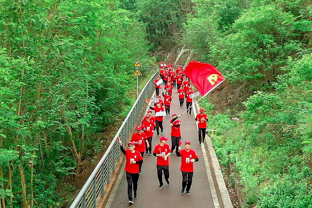 健跑活动从纪念馆出发,沿赤水河绿道共设置7.1公里路程,寓意党的生日。早上9时30分,健跑活动正式开始,清脆响亮的号子、坚定向前的步伐、激情洋溢的笑脸、迎风飞扬的党旗……大家用全力奔跑寓意共产党人的顽强毅力和永不言败。