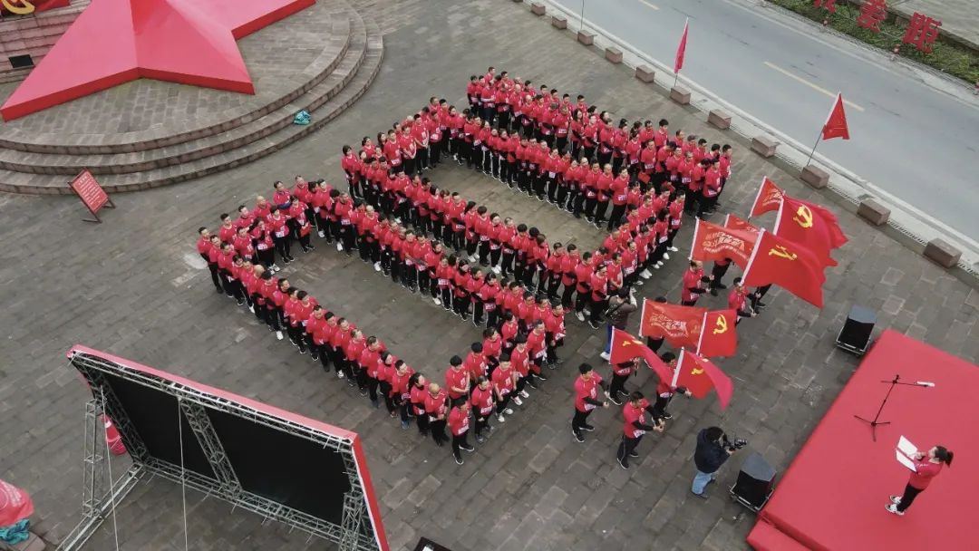 活动于上午9时准时开始,全体人员按照“100”的字样列队,向建党100周年献礼。