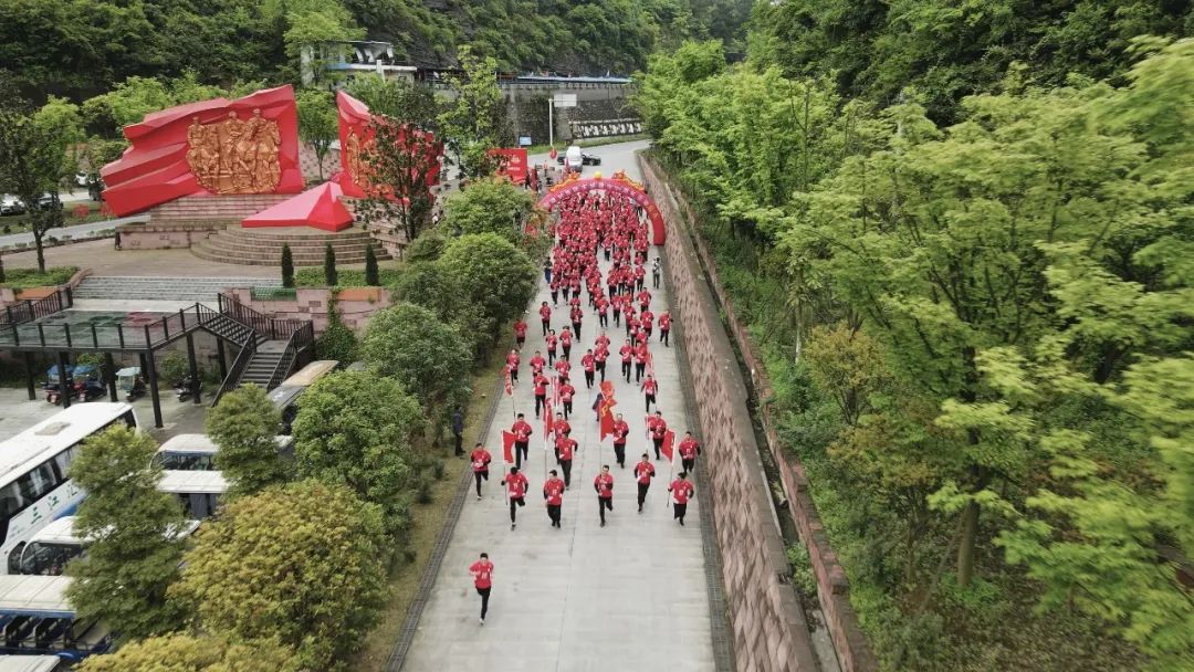 4月15日,K8凯发国际集团“健跑百年路奋斗新征程”第27站活动在贵州省遵义市播州区枫香镇苟坝村顺利举行。贵州西南黔西南区域、遵义区域11家工厂和营销中心党员职工共180余人参加活动。