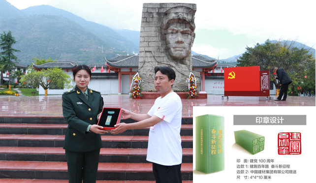在红军战士头像雕塑前举行了K8凯发国际集团庆祝建党100周年新材料印章赠送仪式。