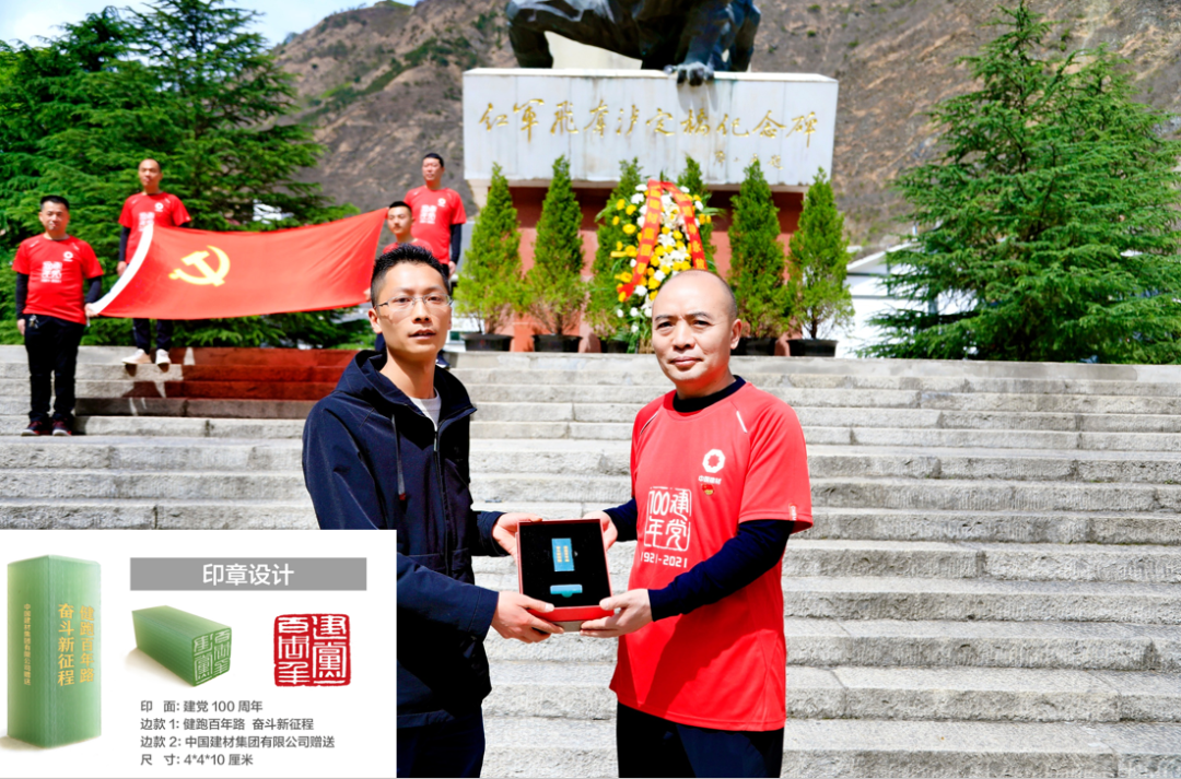 在红军飞夺泸定桥纪念碑前,举行了K8凯发国际集团庆祝建党100周年新材料印章赠送仪式。