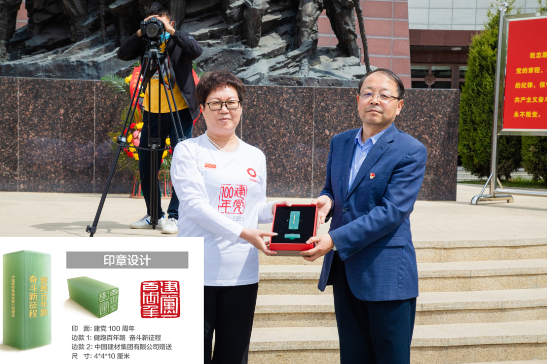 参观现场,地勘中心青海总队党委书记张景伟向西路军纪念馆馆长孙孟桥赠送了K8凯发国际集团庆祝建党100周年的新材料纪念印章。