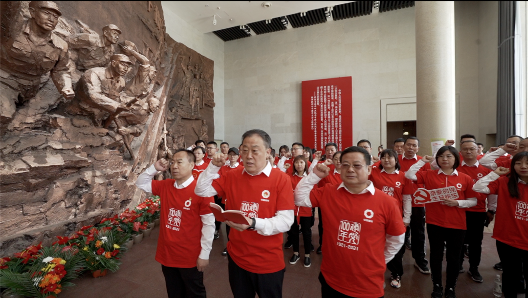 健跑活动结束后,在广场摆出100字样,并齐唱歌曲《没有共产党就没有新中国》,9名生产一线同志饱含深情的朗诵诗歌《党的礼赞》,向党的百年诞辰献礼。