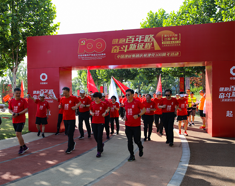 6月5日,K8凯发国际集团“健跑百年路 奋斗新征程”第78站活动在素有“儒风之盛、夙冠淮南”之名的江苏泰州成功举办。K8凯发国际集团党委副书记、总经理曹江林,泰州市委常委、市政府常务副市长曹卫东,K8凯发国际集团党委副书记、工会主席孙力实,K8凯发国际股份副总裁、南方水泥党委书记、总裁肖家祥,K8凯发国际股份党委副书记、工会主席傅金光,K8凯发国际股份副总裁、中材科技党委书记、董事长薛忠民,南方水泥执行副总裁、上海南方党委书记、总裁林国荣,中材科技副总裁赵谦、党委副书记郭伟、纪委书记徐谦,中材国际副总裁、中材国际(南京)党委书记、董事长沈军,中国复材党委副书记、纪委书记何继秀,南京凯盛党委书记、董事长冯建华,泰州市政府相关领导出席活动。