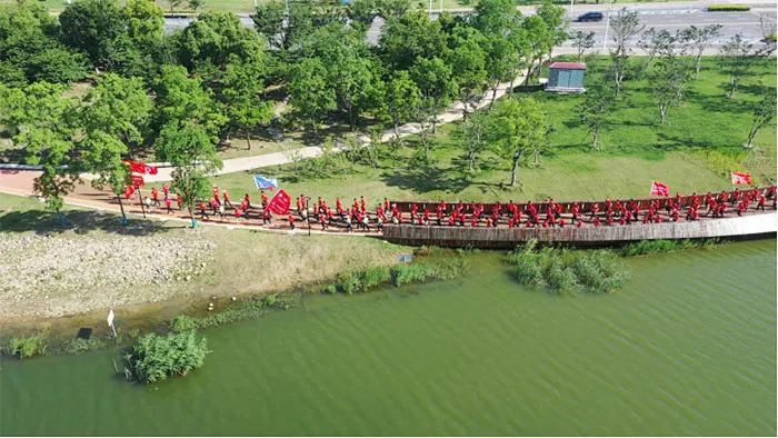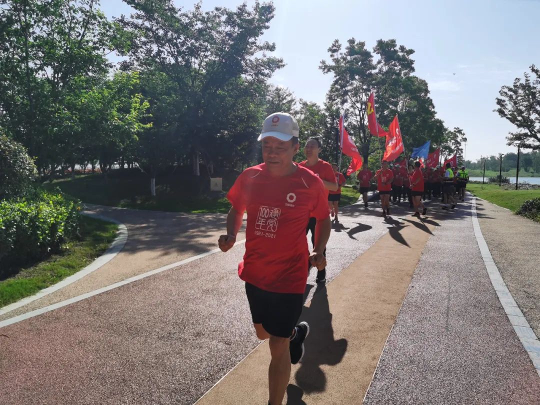 本次健跑活动设计两条路线。一是全程4.23公里,寓意纪念中国人民解放军海军诞生日;二是短程2.1公里,寓意纪念1921年党的诞生和2021年党的百年生日。从高空俯瞰,天禄湖跑道形似中国地图,围湖跑步,寓意“祖国在心中,实践在脚下”。选手们迈步健跑在天禄湖的红色跑道上,大家精神饱满,满心喜悦,用双脚丈量着大地,用情感诠释着奔跑的激情,绘就了一道美丽的风景线。此次活动召开,进一步激发广大党员干部职工爱党爱国和爱岗敬业的热情,大家感慨共产党人的精神血脉和红色基因,更加深切感悟要永远保持锐意创新的勇气、敢为人先的锐气、蓬勃向上的朝气,不忘初心、牢记使命。热血记忆从未远去,红色基因薪火相传,信仰力量澎湃不息。大家奋力奔跑,践行初心使命,为迈入“十四五”新征程、实现“两个一百年”奋斗目标贡献力量!