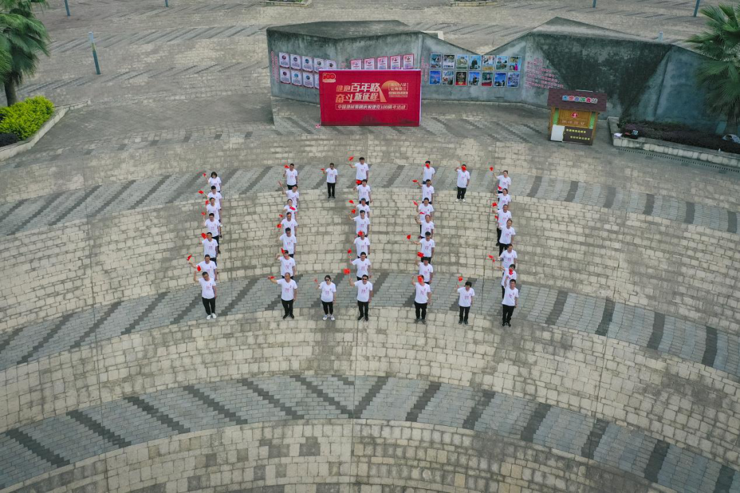 活动现场,全体党员站成数字“100”、“7.1”字样进行拍摄留念,向建党一百周年献礼。所有人举旗,舞动国旗,高呼“健跑百年路 奋斗新征程”,寓意在党的领导下,党员同志要不忘初心、牢记使命,奋力在全面建设社会主义现代化国家新征程中不断创造新的辉煌。