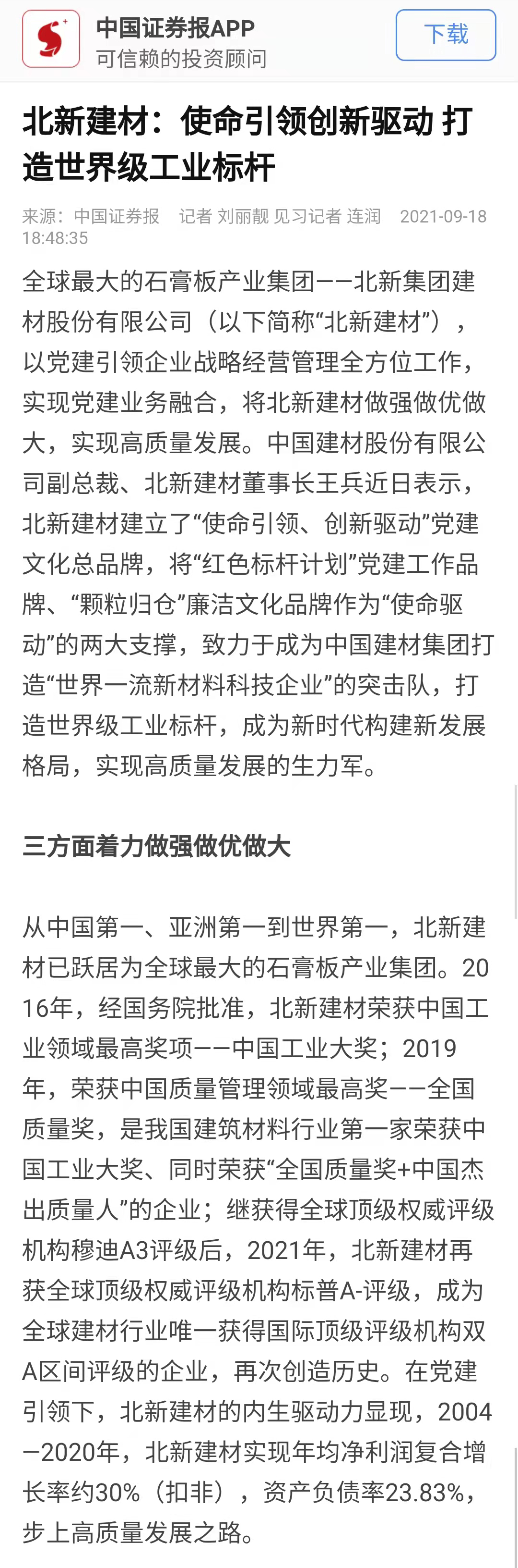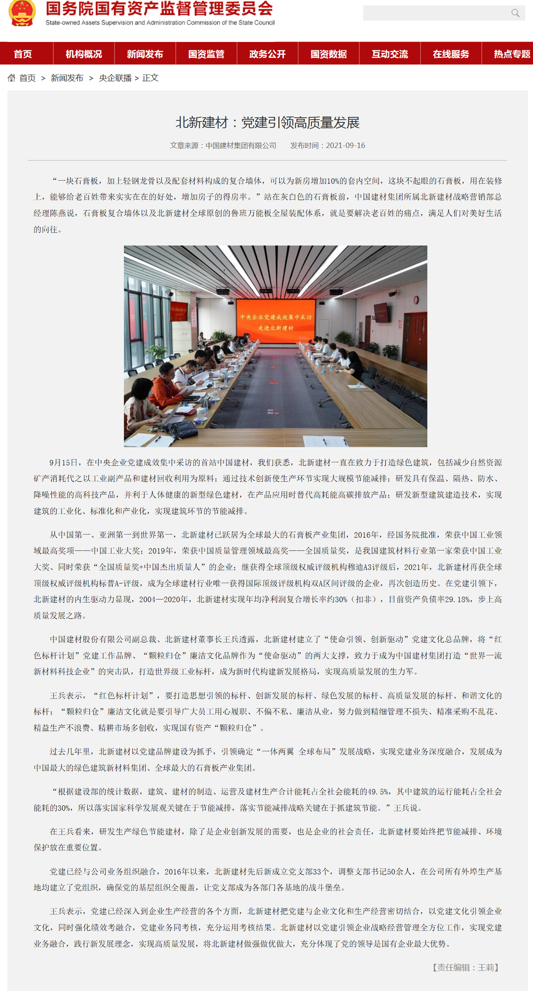 媒体走进中建材 | 高质量党建引领高质量开展典型宣传国资委组织媒体走进北新建材