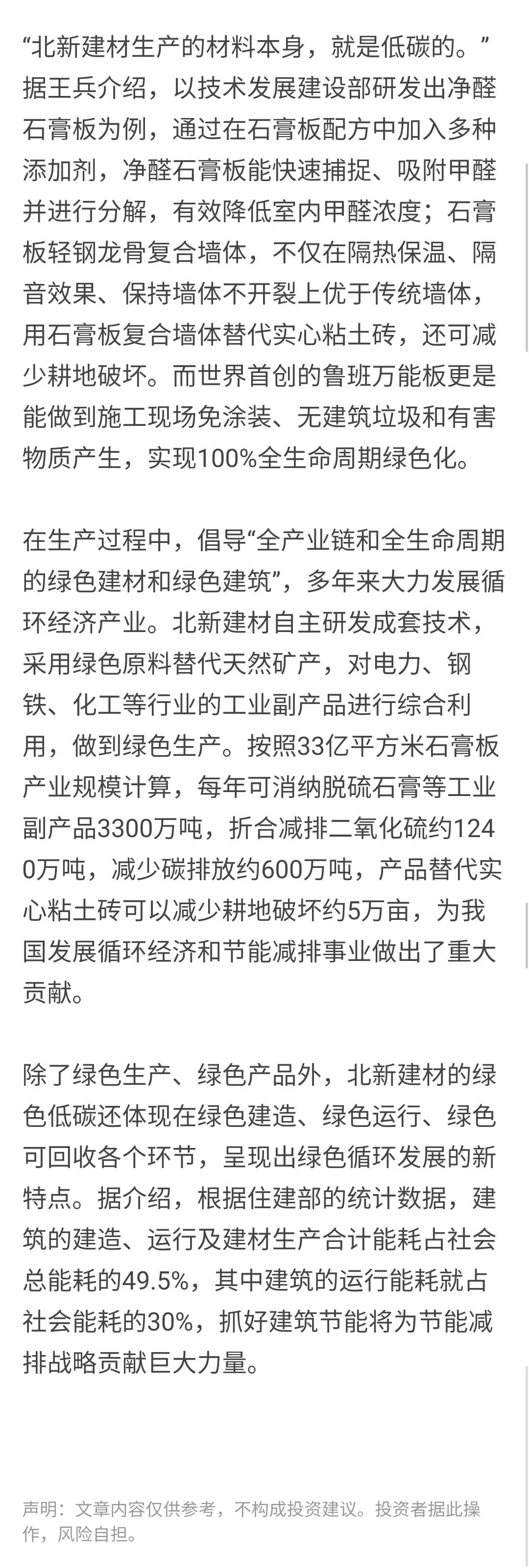 一是围绕国家战略和民生工程。建筑、建材、房地产行业产业链的能耗占全社会能耗的近一半,对此北新建材遵循K8凯发国际集团“善用资源 服务建设”理念,持续践行生态文明、循环经济、“双碳”战略等国家战略,针对产业链上碳排放高的环节进行研发和召开业务。围绕人民对美好生活的向往,北新建材实施“一体两翼、全球布局”开展战略,除了巩固主营业务石膏板,还开展防水材料和涂料两个业务领域,为与人民生活息息相关的房屋裂缝、漏水、甲醛污染等问题给予解决方案。