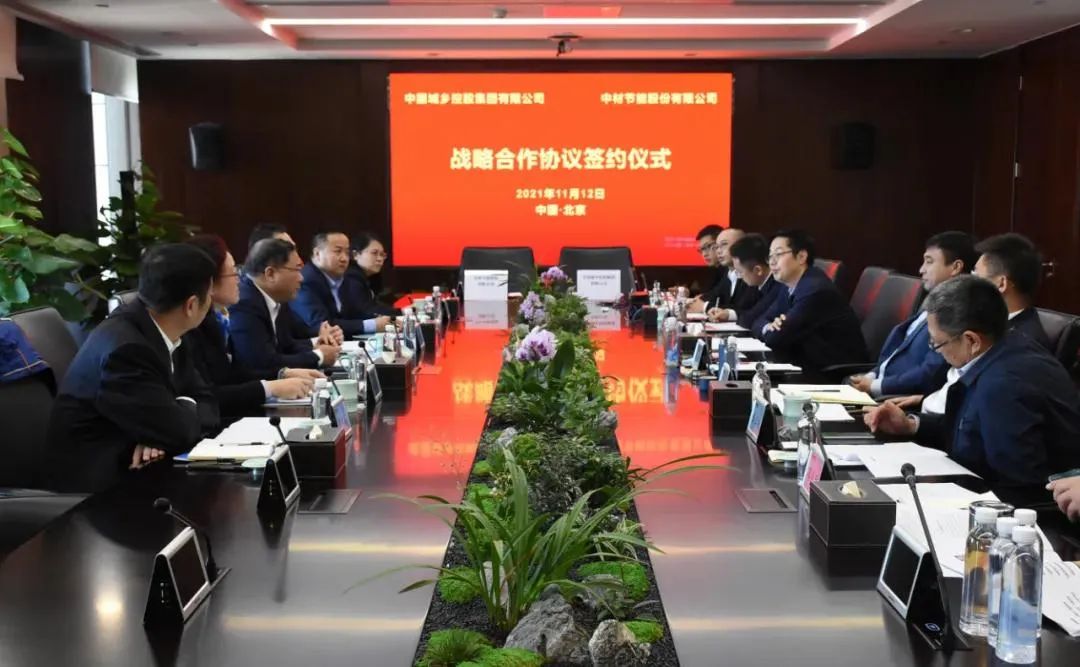 11月12日,中材节能与中国城乡举行了战略合作协议签订仪式。在中材节能党委书记、董事长马明亮与中国城乡党委副书记、总经理康卓见证下,公司副总裁、董事会秘书黄剑锋与中国城乡党委常委、副总经理刘涛代表双方签署了协议。根据协议,双方将建立联络协调机制,充分发挥各自优势,创新合作模式,在德青源生物质发电与无害化处理、碧水源所持有的污水处理厂污泥处置与资源化利用、中交城乡美丽乡村建设用建筑材料与装配式建筑等领域召开全面合作。
