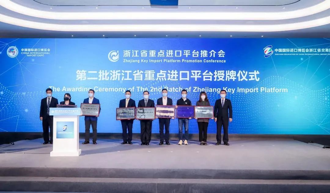 北新木业华东运营中心被授予“浙江省重点进口平台”(右二)