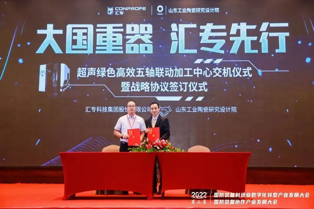 近期,第二届国防装备制造业数字化转型产业开展大会在广州召开,集团所属山东工陶院与汇专科技集团股份有限公司举行“超声绿色高效五轴联动加工中心交机仪式暨战略协议签订仪式”。此次战略协议的签订,是双方互利合作、共谋开展的里程碑成果,也是携手突破科技攻关技术的实际行动。双方将以此为新的起点,充分发挥各自技术优势、人才优势、产业链优势,聚焦工业陶瓷新材料研发及精密加工等方面召开全方位合作,共同解决新材料领域加工共性关键技术,努力实现资源互补、互利共赢,为国防建设贡献更大力量。