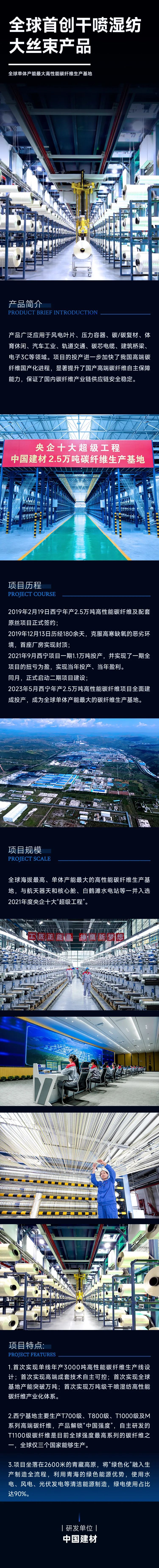 中复神鹰西宁生产基地总投资50亿元,总占地800亩。在国内首次构建具有完整自主知识产权的万吨级干喷湿纺碳纤维产业化生产体系,整体装备国产化率达到90%以上。