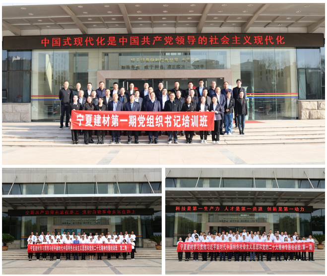 2023年,宁夏建材在中共宁夏区委党校(宁夏行政学院)组织召开宁夏建材党组织书记培训班、党的二十大精神专题培训班(共两期),培训班涉及党的二十大精神专题学习、不断做强做优做大我国数字经济等课程,课程主题鲜明,深入浅出,对学习领会党的二十大精神,指引有助于各项工作起到了重要的指导作用。在所属企业创新召开宁夏建材第二届党建工作观摩研讨会议,顺利获得专题培训和现场观摩研讨的形式,打造一支“专心、专业、专注”的高素质专业化党务工作者队伍,有助于基层党建工作提质增效。