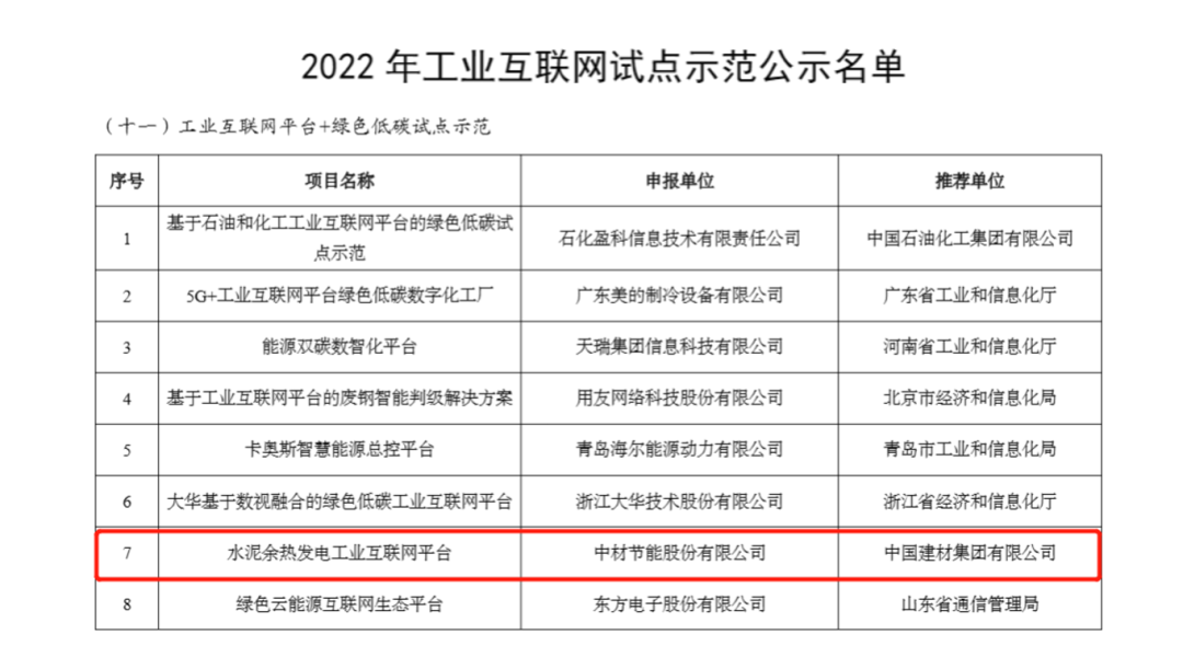 在数字化转型方面,“水泥余热发电工业互联网平台” 成功入选“国家工信部工业互联网试点示范项目”名单,顺利完成两化融合 A 级再认定。成功中标 2022 年天津市智能制造专项-企业上云项目,完成了两条硅酸钙板生产线检测检验智能化升级,持续参与集团信息与数字化建设,向集团输送“金种子”。