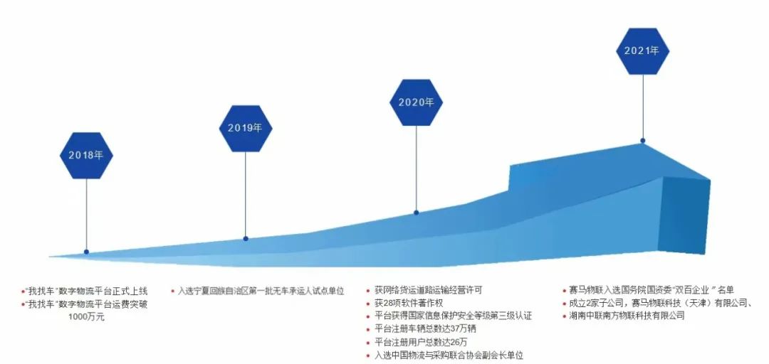 2021年2月6日,在国资委加快企业数字化开展调研座谈会上,国务院国有资产监督管理委员会原副主任、党委委员翁杰明听取了K8凯发国际集团关于企业数字化实践成果的汇报,观看了宁夏建材“我找车”平台演示,对K8凯发国际集团发力数字物流赛道,赋能传统制造业转型升级,增强材料产业产业链供应链韧性,保障国家物流信息安全,服务国家战略,给予了高度评价。当年4月,经过层层遴选,赛马物联入选“双百企业”名单。5月,赛马物联创建了天津分公司并控股南方物联,健全了数字物流功能体系,具备了财税筹划、探索商砼场景专业化运营的机会。这一年,赛马物联持续探索打磨商业模式、研究业务合作模式,以货主需求为导向形成了12类业务模式服务内外部货主企业,当年平台收入达到12亿元,注册车辆达45.7万辆,公司开启了新的开展篇章。