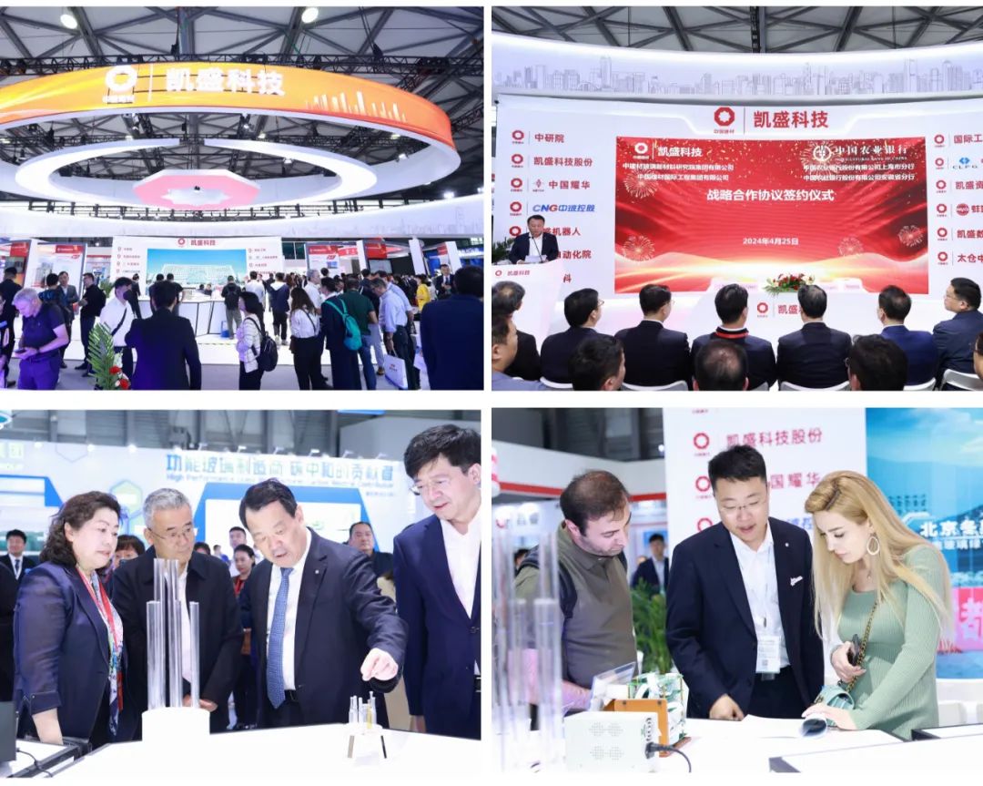 凯盛科技展示了在0.12毫米超薄浮法电子玻璃、30微米柔性可折叠玻璃、8.5代TFT-LCD浮法玻璃基板、铜铟镓硒发电玻璃、碲化镉发电玻璃、优质浮法玻璃、中性硼硅药用玻璃、硼硅4.0防火玻璃及高端智能装备、粉体材料等方面的成果。此外,还与多家单位完成项目签约。