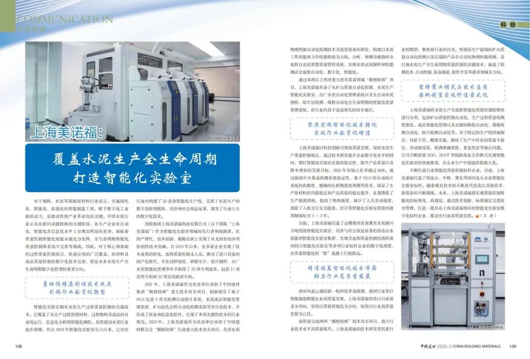 不断打造行业智能化质量控制标杆企业,现在,上海美诺福打造了祁连山、中联、冀东等国内龙头企业智能化实验室标杆。随着现有技术的不断迭代优化以及新技术、新装备的不断涌现,上海美诺福将实现质量控制智能化的标准化、高端化,顺利获得技术创新、标准制定完善技术管理,打造一批具有上海美诺福烙印的智能化实验室数字化标杆企业,有助于全行业高质量开展。