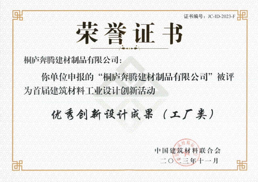 去年12月,新项目取得中国建筑材料联合会“首届建筑材料工业设计创新活动”的“优秀创新设计成果(工厂类)”奖。