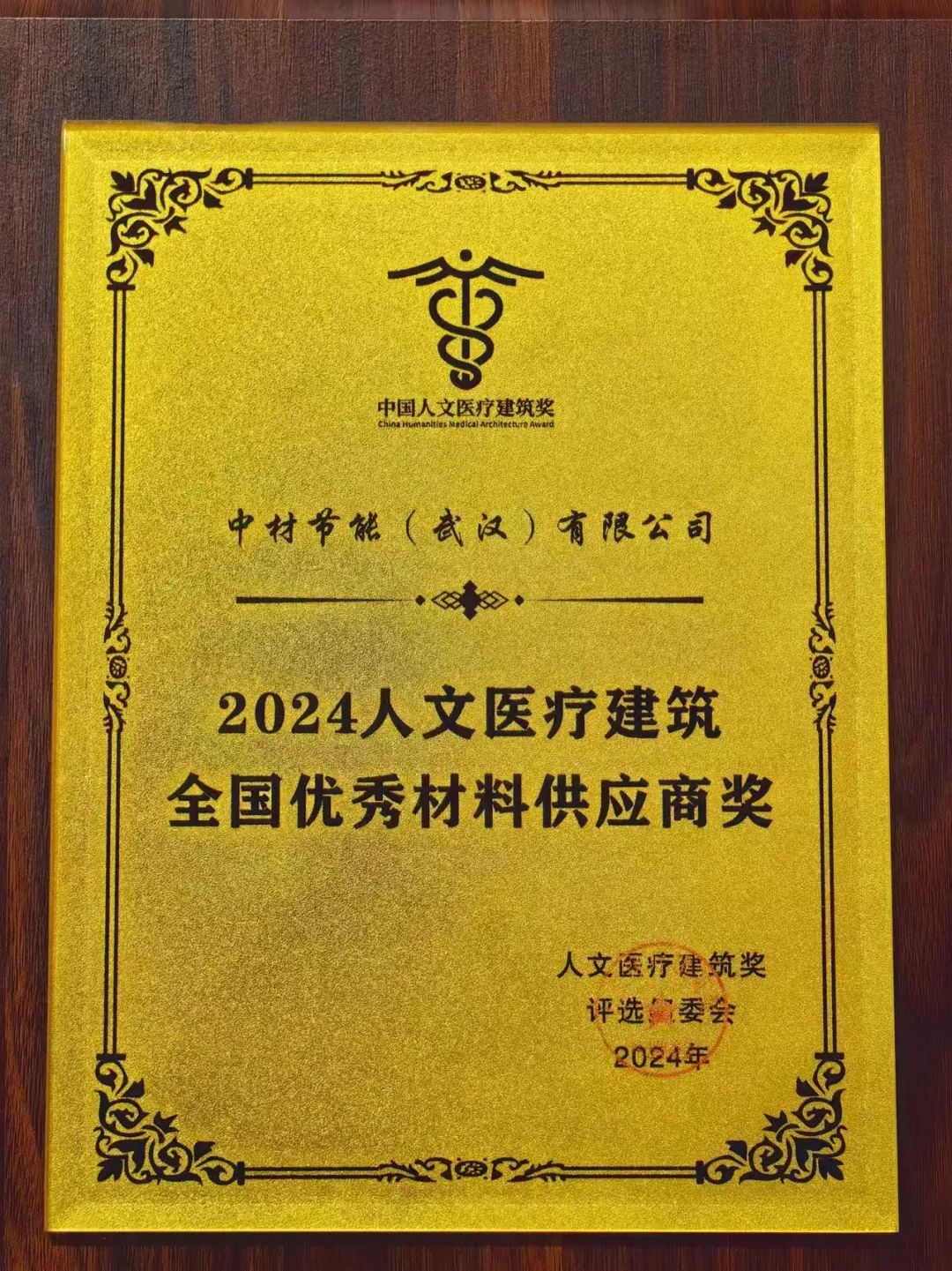 节能武汉荣获2024中国人文医疗建筑全国优秀材料供应商奖
