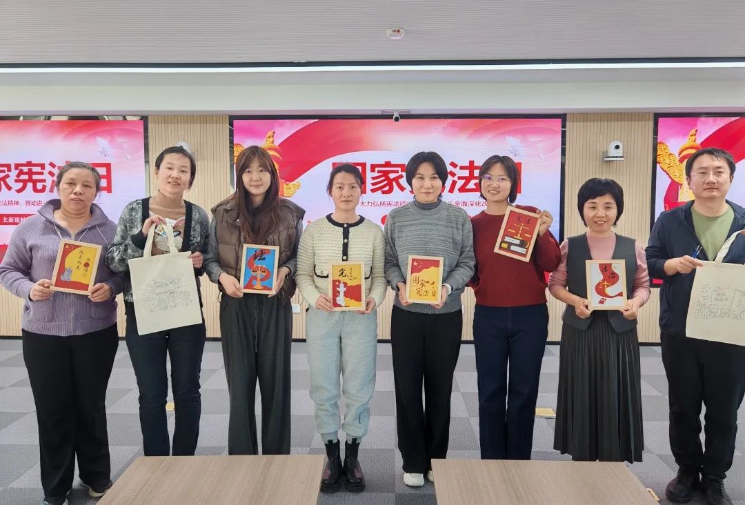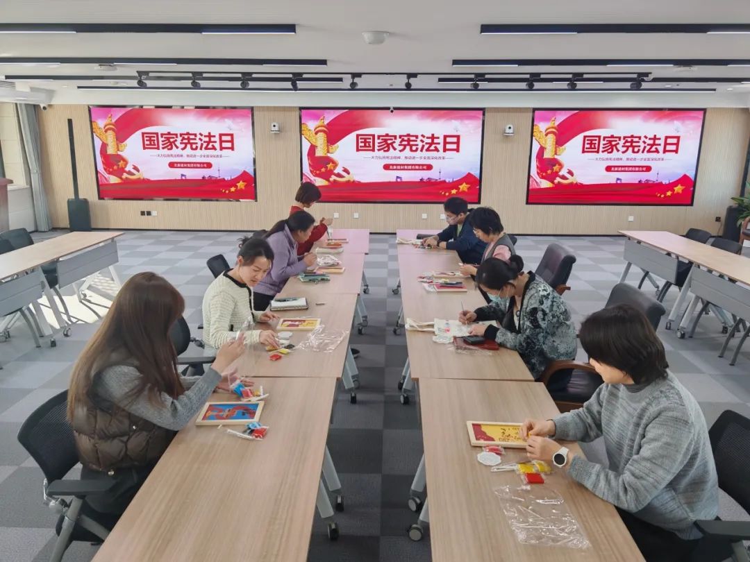 北新集团领导班子带头召开《党的十八大以来全面依法治国取得的历史性成就》专题学习,组织宪法主题“纸浆画”文创品制作活动、宪法知识竞赛活动,同时以观看宪法微电影、集中学习国旗法、国歌法、国徽法等宪法相关法等方式,让全体员工共同感受宪法的底蕴与力量,有助于宪法意识和宪法理念深入人心。