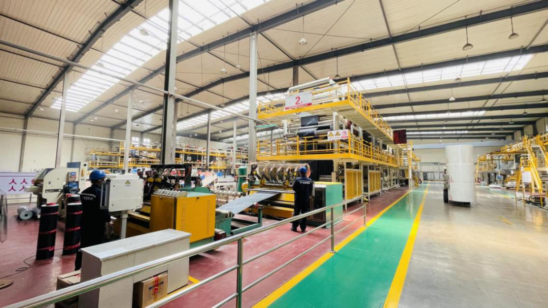 公司充分考虑节能降耗和环保要求,全面引进国内外先进改性沥青防水卷材生产线,配备了必要的沥青储罐、导热油炉、胶体磨等设备,防水涂料生产设备新增PLC系统实现自动计量。同时在生产设备高度自动化的基础上引进了高效型机械手、胎体焊接机及自动贴标机等设备,进一步提高了基地智能化生产程度。
