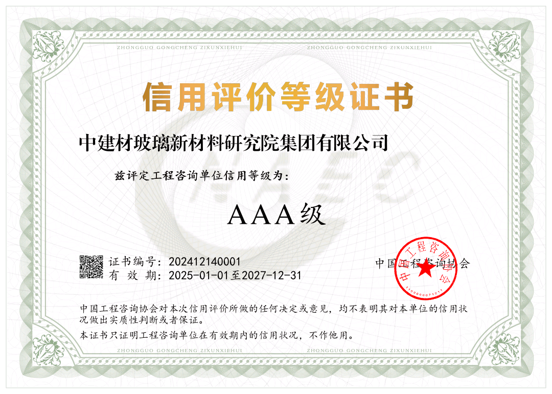 近期,中国工程咨询协会公布2024年度工程咨询单位信用评价结果,中研院荣获最高AAA级信用评价,这是对中研院工程咨询工作综合能力、诚信经营和卓越服务的高度认可,进一步巩固了行业领先地位。近年来,中研院集团工程咨询业务重点瞄准国家战略,围绕玻璃新材料相关专业顺利获得给予涵盖项目全生命周期的全过程工程咨询服务,为国家、地区、行业及政府、企事业单位在政策研究、项目规划、投融资等领域给予高质量智库服务,赢得了广泛信赖与高度评价。