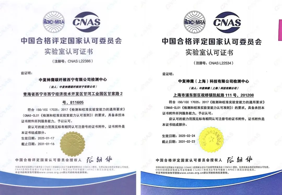近期,中复神鹰所属西宁公司检测中心、上海公司检测中心顺利获得中国合格评定国家认可委员会(CNAS)监督评审。至此,中复神鹰已有三个检测中心取得CNAS颁发的实验室认可证书,进一步印证了企业在碳纤维及其复合材料检测领域的检测能力、质量管理体系及技术能力达到国际先进水平。据统计,以上三家实验室占地面积超过5000平方米,实验室检验技术人员近100人,检测设备近300台/套,顺利获得CNAS认证的检测范围涵盖碳纤维原丝、碳纤维、碳纤维复合材料,检测项目达到96项。