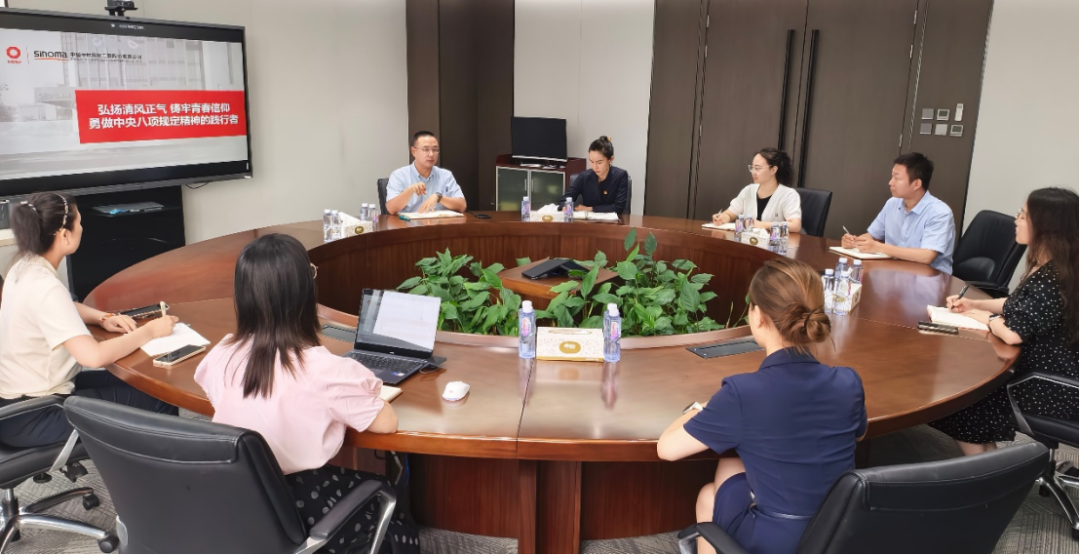 中材国际总部团支部组织青年集中学习中央八项规定精神,深入解读背景意义、核心内容和实践要求,结合典型案例剖析作风建设的重要性。大家深刻认识到,青年作为企业开展的生力军,必须以清风正气涵养初心,以纪律规矩约束言行,在思想上正本清源,在行动上严守底线。