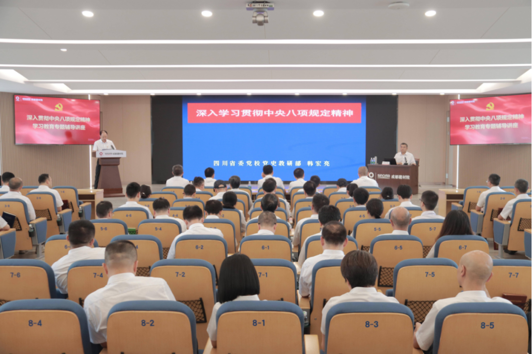 成都建材院团委组织全体团员青年参加深入贯彻中央八项规定精神学习教育专题辅导讲座,深入学习党的作风建设开展历程及主要理论成果,学习中央八项规定精神,进一步强化廉洁从业意识。