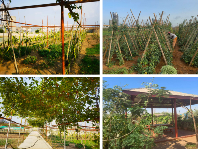 就捡拾工业废料,动手搭建凉亭、育苗架