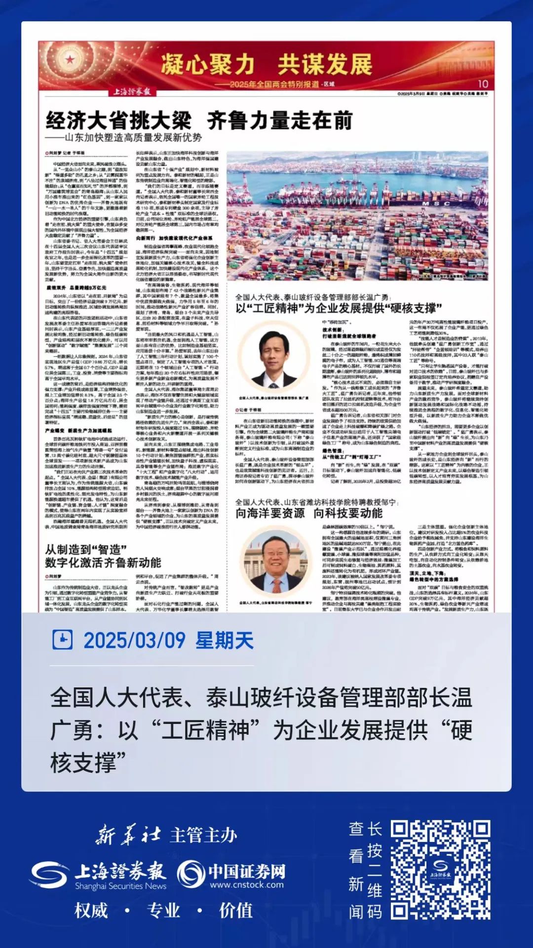 从一家地方企业到全球玻纤巨头,泰山玻纤的成长史,是山东经济向“新”而行的缩影。这家以“工匠精神”为内核的企业,正以技术创新定义产业未来,以绿色智造引领低碳转型,以人才培育夯实开展根基,为山东经济高质量开展贡献力量。