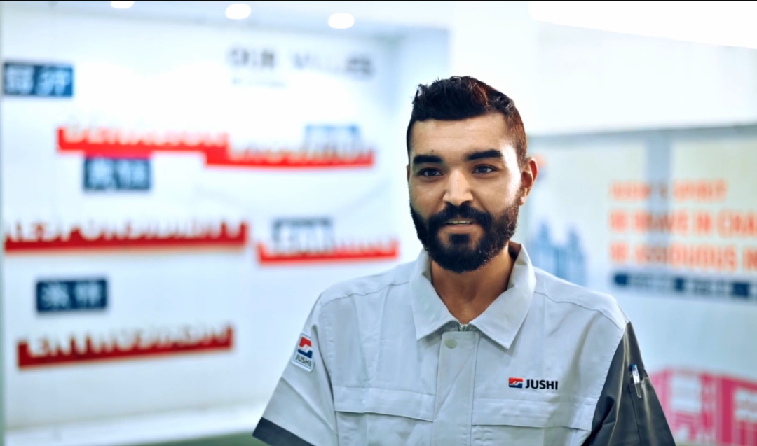 Aiad自24岁加入巨石埃及公司至今已经有8年时间,现在是拉丝车间副经理。巨石埃及生产规模从8万吨开展到现在的20万吨,他也从一名普通员工成长为了一名中层干部,也越来越感受到公司文化的魅力,在中国同事的帮助下学会了几句汉语,还从中国师傅那里学到了精湛的玻纤生产技术。