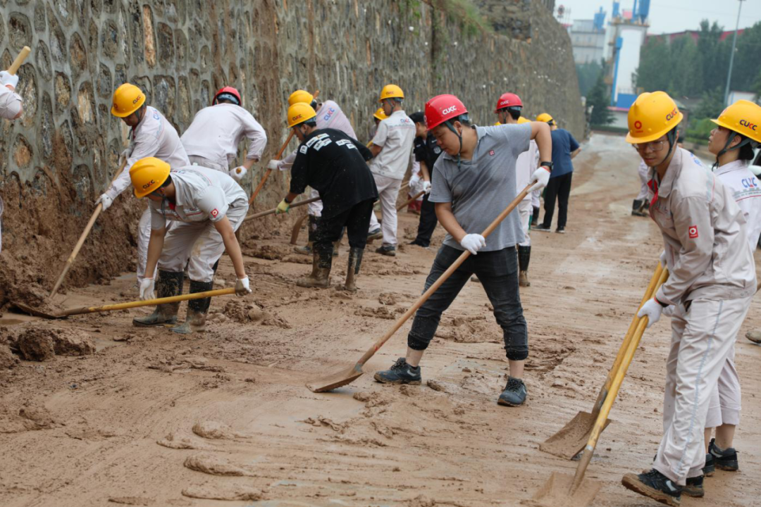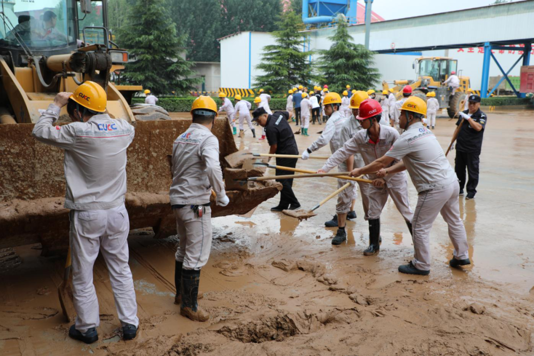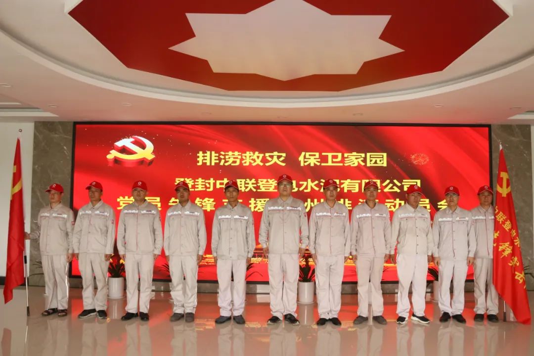 所属登封中联组织创建党员先锋突击队,赶赴郑州参加排涝救灾工作。